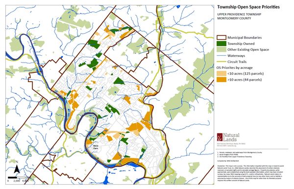 Upper Providence Township is 95% built out. Per the map made available on the Township’s website, and reproduced on the right, many of the parcels identified as “Open Space Priorities” are wetlands, contain steep slopes, or are otherwise undevelopable.